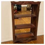 - Lot #293 - Vintage Wooden Wall Shelf with Mirror and Carved Detailing