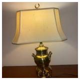 - Lot #325 - Vintage Brass Samovar Table Lamp with Cream Shade - (23.5"t)
