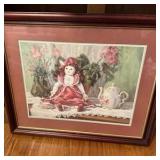 - Lot #352 - Framed Print of a Doll and Teapot Still Life by Val Bishop 1986
