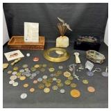 - Lot #360 - Mixed Coin and Jewelry Collection with Decorative Boxes and Sculpture