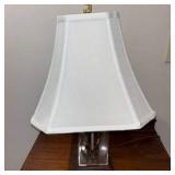 - Lot #326 - Vintage Brass Table Lamp with White Fabric Shade - (24" tall)