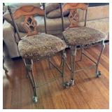- Lot #291 - Vintage Wooden Chair with Floral Carving and Worn Upholstered Seat
