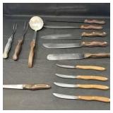 - Lot #56 - Mixed Flatware Set Including Stainless Steel and Wood-Handled Knives