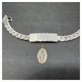 - Lot #335 - Decorative Silver Beaded Mirror with Solid Wood Frame
