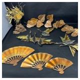 - Lot #41 - Vintage Copper Art Decor Lot featuring Fans, Birds, and Foliage