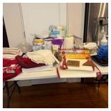 - Lot #52 - Assorted Kitchen and Dining Lot with Textiles and Disposable Supplies