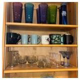 - Lot #90 - Assorted Coffee Mug Collection with Antique Olive Glassware Set
