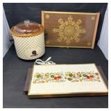 - Lot #68 - Vintage Rival Crock-Pot Slow Cooker and Retro Serving Trays Lot