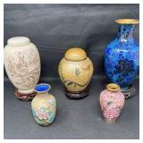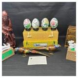 - Lot #32 - Asian Art Collection Hand-Carved Wood Figure, Cloisonn頂irds, Porcelain Eggs & Decorative Chest