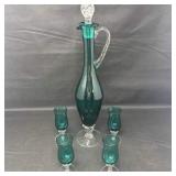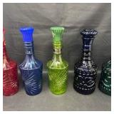 - Lot #33 - Vintage Art Glass Bottles Colorful Decanters in Red, Blue, Green & Dark Glass (Set of 5)