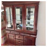 - Lot #2 - Solid Wood Two-Piece Hutch / China Cabinet Glass Doors 82 Tall