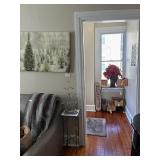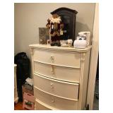 This is an estate sale you will not want to miss! With a beautiful gray leather sofa, and matching chair with ottoman. An ornate iron and glass table. A designer side table in smoky black, and a black round table with four matching chairs. A pair of tall glass front cabinets with lots of shelving. Wicker and iron bakers racks. A 6 piece white painted furniture set, including, a tall chest, a lingerie chest, a dresser with mirror, a night stand, a cabinet with a mirror front and drawers, and a ladies tall chest. Vintage doll house with furniture, and Vintage Christmas, Easter and Halloween decorations. A tall book case. Lots of kitchen items, including, pots, pans and flatware. Lenox china, and other pieces. Linens, towels, sofa throws, and ladies hand bags. Sewing items and knitting items. Patio furniture, and small appliances. Batman poster, lots of prints and artwork. Sterling silver plated items, Dvd's, Cds, and costume jewelry. Acura car in excellent condition. Ladies furs, coats and area rugs. Plus so much more.
