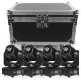 U`King 4PCS Moving Head DJ Lights with Flight Case Storage Container, LED Stage Lights by DMX/Sound Activated with Customized Road Case for Patry Wedding DJ Disco Bar Birthday