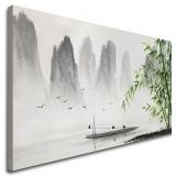 Large Hand Painted Traditional Chinese Painting Black and White Modern Landscape Canvas Wall Art Handmade Bamboo Artwork