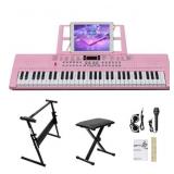 61 Keys Keyboard Piano with Stand, Bench, Built In Speakers for Beginners, Pink