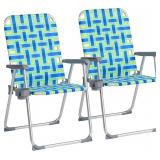 VINGLI Aluminum Patio Lawn Chairs Folding Set of 2 with Detachable Cup Holder, Webbed Beach Chair Folding Chair Outdoor Portable Camping Chair for Yard, Garden Blue