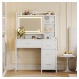 Durable Build & Long-lasting: Crafted from Crafted from high quality MDF with silent slides,explosion-proof glass, and anti-tip design, this white makeup table is safe, and long-lasting.All parts are clearly labeled, and step-by-step instructions and tools are included to ensure your assembly process