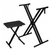 Ktaxon Double X Keyboard Stand and Bench Set, Adjustable Height Digital Piano Stand with Lockable Straps for 49 61 76 88 Keys