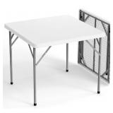 White Card Square Table, 34 inch Foldable Legs Full Table Top, Easy to Set up and Store, Folding Portable for Game Puzzles, Gathering, Party, Dining, Indoor, Outdoor, Outside