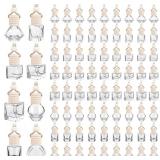 Dandat 80 Pcs 8 ml Hanging Car Freshener Diffuser Pendant Bottle Empty Transparent Glass Aromatherapy Essential Oil Air Diffuser for Perfume Gift with Wooden Caps Lanyard