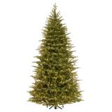 (160) National Tree Company 7.5 ft Pre-Lit Nordic Spruce Slim Artificial Christmas Tree, 600 LED Lights, 3,268 Tips, Foot Pedal, 10 Light Functions, Includes Stand, Green