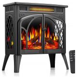 (96) ZAFRO 24" Freestanding Electric Fireplace Stove with Remote Control, Fireplace Heater with Adjustable Flame Color and Brightness, Timer/Sleep Mode/Overheat Protection for Bedroom, Living Room(Black)