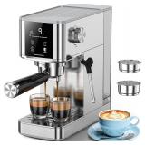 (185) Joy Pebble Espresso Machine,20 Bar Professional Espresso Maker with Coffee Bean Grinder Milk Frother,Coffee Machine for Espresso/Cappuccino/Latte,Single & Double Cup,Stainless Steel