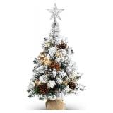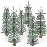 WinnerWhy 6 Pcs Slim Christmas Pine Tree with Wooden Stakes 3.28 Ft/3.94 Ft/4.92 ft Green Snow Flocked Artificial Pencil Pine Tree for Xmas Home Shops Indoor Outdoor