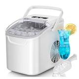 Countertop Ice Maker Machine, 8 Ice Cubes in 6 mins, 26lb/Day Ice with 2 Sizes- Portable Mini, Energy Saving & Basket/Scoop for Home/Party/Travel/Camping/Bar,White