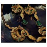 Cleopatra Snakes with fabulous emerald green glass stones ~ SET! Cleopatra Snakes Choker