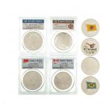 FEATURED AUCTION ITEMS: Lot Number Lot Title 2000 2.3 TROY OZ .999 SILVER HAND POURED 3-D SKULL 2001 LOT OF 2 2025-S PEACE & MORGAN .999 SILVER PROOF MODERN ANNIVERSARY DOLLARS 2002 RARE! VINTAGE 10 TROY OZ .999 FINE SILVER BAR BY BELL ASSOCIATES 2003 JOHNSON MATTHEY 10 TROY OZ. .999 SILVER BAR 2004 1797 GREAT BRITAIN TWO-PENCE CARTWHEEL COPPER COIN 2005 2012 AUSTRALIA YEAR OF THE DRAGON 5 TROY OZ .999 SILVER PROOF $8 COIN 2006 1 TROY OZ .999 FINE SILVER HAND POURED T-REX STAMPED INGOT 2007 2018-S U.S. MINT LIMITED EDITION SILVER PROOF 8 COIN SET 2008 1986-S AMERICAN SILVER EAGLE NGC PF69 ULTRA CAMEO 2009 2 TROY OZ .999 FINE SILVER HAND POURED SCARAB BEETLE 2010 1934 A $100 GREEN SEAL NEW YORK FEDERAL RESERVE BANK NOTE. FR. 2153B 2011 10 TROY OZ .999 FINE SILVER ASAHI REFINERY BAR 2012 2006-W AMERICAN SILVER EAGLE 20TH ANNIVERSARY 3 COIN SET 2013 LOT OF 11 ASSORTED MORGAN SILVER DOLLARS 2014 2017-S AMERICAN SILVER EAGLE FIRST STRIKE PCGS PR70DCAM 2015 LOT OF 100 ASSORTED MERCURY SILVER DIMES 2016 1903 GEORGE V GOLD HALF SOVEREIGN 2017 LOT OF 4 2021-2024 AMERICAN SILVER EAGLES UNC 2018 2.09 TROY OZ .999 SILVER "CALVARY HILL' INGOT 2019 2021-CC U.S. MINT MORGAN SILVER DOLLAR UNC 2020 LOT OF 20 2011 1 TROY OZ .999 SILVER BUFFALO ROUNDS 2021 LOT OF 50 1965-1970 KENNEDY SILVER HALF DOLLARS 2022 LOT OF 10 ASSORTED SILVER PEACE DOLLARS 2023 LOT OF 3 ASSORTED EARLY U.S. SILVER COINAGE 2024 $500 SEALED LOOMIS BANK BOX 50 ROLLS OF HALF DOLLARS 2025 APRIL 1943 SERIES E $25 WW2 DEFENSE BOND 2026 LOT OF 200 ASSORTED ROOSEVELT SILVER DIMES 2027 LOT OF 5 ASSORTED U.S. MINT COMMEMORATIVE SILVER DOLLARS UNC 2028 BULK LOT OF 637 GRAMS ASSORTED SILVER FOREIGN COINS 2029 2021 U.S. MINT LIMITED EDITION AMERICAN EAGLE 6 COIN PROOF COLLECTION SET 2030 LOT OF 7 ASSORTED MORGAN SILVER DOLLARS 2031 2 TROY OZ .999 FINE SILVER ULTRA HIGH RELIEF TRAIN ROBBER ART ROUND 2032 2019 ROYAL CANADIAN MINT "PRIDE OF TWO NATIONS" LIMITED EDITION 2 COIN SET 2033 LOT OF 200 ASSORTED WASHINGTON SILVER QUARTERS 2034 LOT OF 10 ASSORTED GOLD-PLATED AMERICAN SILVER EAGLES 2035 LOT OF 23 ASSORTED WALKING LIBERTY SILVER HALF DOLLARS 2036 LOT OF 144 ASSORTED PRESIDENTIAL GOLDEN DOLLARS 2037 2012-S AMERICAN SILVER EAGLE 75TH ANNIVERSARY TWO COIN SILVER PROOF SET 2038 LOT OF 9 1999-2008 U.S. MINT SILVER PROOF SETS 2039 LOT OF 36 1957 $1 BLUE SEAL SILVER CERTIFICATES 2040 LOT OF 10 JOHNSON MATTHEY 1 TROY OZ .999 FINE SILVER BARS 2041 2005 $5 1/10 OZ GOLD AMERICAN EAGLE PCGS GEM BU 2042 LOT OF 20 1921 MORGAN SILVER DOLLARS 2043 LOT OF 5 CONSECUTIVE 2004-2008 U.S. MINT SILVER PROOF SETS 2044 LOT OF 20 ASSORTED KENNEDY SILVER HALF DOLLARS 2045 LOT OF 15 ASSORTED FOREIGN SILVER COINS AND ROUNDS 2046 2 TROY OZ .999 FINE SILVER DOUBLE DIAMOND BAR 2047 LOT OF 20 ASSORTED AMERICAN SILVER EAGLES 2048 LOT OF ASSORTED U.S. SILVER COINAGE 2049 LOT OF 31 ASSORTED U.S. MINT PHILIPPINES COINS 2050 LOT OF 6 ASSORTED 1889 MORGAN SILVER DOLLARS 2051 LOT OF 20 1922 SILVER PEACE DOLLARS UNC 2052 LOT OF 13 ASSORTED 1953 $2 RED SEAL BANK NOTES 2053 BULK LOT OF ASST U.S. & FOREIGN COINS INCLUDES SILVER 2054 LOT OF ASSORTED EARLY U.S. COINAGE INCLUDES SILVER 2055 LOT OF 5 2020 & 2021 U.S. MINT SILVER PROOF SETS 2056 LOT OF 100 ASSORTED MERCURY SILVER DIMES 2057 2 TROY OZ .999 SILVER MEXICO TEXAS RANGERS WAGON WHEEL BADGE ROUND BY INTAGLIO MINT 2058 BULK LOT OF ASSORTED FOREIGN CURRENCY 2059 LOT OF 7 ASSORTED SILVER PEACE DOLLARS 2060 LOT OF 25 2021 CANADA 1 TROY OZ .999 SILVER $5 MAPLE LEAF BU 2061 LOT OF 52 ASSORTED 1977-2014 U.S. MINT PROOF AND UNCIRCULATED COIN SETS 2062 LOT OF 20 ASSORTED WALKING LIBERTY SILVER HALF DOLLARS 2063 5 OZ .999 SILVERTOWNE BUFFALO SILVER BAR 2064 LOT OF 7 ASSORTED CHINA 1 TROY OZ .999 SILVER PANDA 10 YUAN 2065 LOT OF 20 1953 A $5 BLUE SEAL SILVER CERTIFICATES 2066 BULK LOT OF ASSORTED FOREIGN CURRENCY 2067 LOT OF 6 ASSORTED MORGAN SILVER DOLLARS 2068 LOT OF 200 ASSORTED ROOSEVELT SILVER DIMES 2069 5 OZ .999 SILVERTOWNE BUFFALO SILVER BAR 2070 LOT OF 8 ASSORTED AMERICAN SILVER EAGLES 2071 LOT OF 40 ASSORTED FRANKLIN SILVER HALF DOLLARS 2072 LOT OF 5 ASSORTED U.S. MINT COMMEMORATIVE SILVER DOLLARS UNC 2073 LOT OF ASSORTED U.S. STATEHOOD QUARTERS 2074 2023 2 TROY OZ .999 FINE SILVER UNICORN ROUND BY INTAGLIO MINT 2075 LOT OF 20 1921 MORGAN SILVER DOLLARS 2076 LOT OF 10 SILVERTOWNE TRADEMARK 1 TROY OZ .999 SILVER BARS 2077 LOT OF 25 2021 CANADA 1 TROY OZ .999 SILVER $5 MAPLE LEAF BU 2078 1996 $50 GREEN SEAL SAN FRANCISCO FEDERAL RESERVE STAR NOTE. FR. 2126-L* 2079 LOT OF 20 2014 1 TROY OZ .999 SILVER 2 POUND BRITANNIA BU 2080 LOT OF 20 ASSORTED KENNEDY SILVER HALF DOLLARS 2081 LOT OF 150 ASSORTED PRESIDENTIAL GOLDEN DOLLARS 2082 LOT OF 204 ASSORTED WASHINGTON SILVER QUARTERS 2083 LOT OF 7 ASSORTED MORGAN SILVER DOLLARS 2084 LOT OF 5 2016-2020 BURNISHED AMERICAN SILVER EAGLES 2085 LOT OF 39 ASSORTED EARLY U.S. COINAGE 2086 LOT OF 5 CONSECUTIVE 2009-2013 U.S. MINT SILVER PROOF SETS 2087 LOT OF 4 2014 AUSTRALIAN LUNAR SERIES 1 TROY OZ .999 SILVER PROOF HIGH RELIEF COINS 2088 LOT OF 4 1 TROY OZ .999 FINE SILVER POP BULLION 2089 LOT OF 16 ASSORTED U.S. SILVER COINS 2090 BULK LOT OF ASSORTED U.S. COINS & CURRENCY INCLUDES SILVER 2091 LOT OF 8 ASSORTED 1928 RED SEAL BANK NOTES 2092 LOT OF 20 2021 AMERICAN SILVER EAGLES 2093 LOT OF 100 ASSORTED MERCURY SILVER DIMES 2094 LOT OF 8 ASSORTED MORGAN SILVER DOLLARS 2095 LOT OF 5 1 TROY OZ .999 FINE SILVER BUFFALO ROUNDS 2096 5.6 TROY OZ .999 FINE SILVER BARS 2097 LOT OF 15 ASSORTED 1 TROY OZ .999 FINE SILVER ROUNDS AND TOKENS 2098 2006 $5 1/10 OZ GOLD AMERICAN EAGLE 2099 LOT OF 5 ASSORTED BRITISH INDIA SILVER RUPEES 2100 10 TROY OZ .999 FINE SILVER A-MARK REFINERY BAR 2101 VINTAGE ARGOR S. A. CHIASSO 16.075 TROY OZ .999 SILVER BAR 2102 LOT OF 40 ASSORTED WALKING LIBERTY SILVER HALF DOLLARS 2103 LOT OF 6 ASSORTED MORGAN SILVER DOLLARS 2104 LOT OF 21 ASSORTED $2 GREEN SEAL FEDERAL RESERVE BANK NOTES 2105 LOT OF 125 ASSORTED PRESIDENTIAL GOLDEN DOLLARS 2106 2 TROY OZ .999 FINE SILVER AZTEC CALENDAR AR