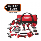 - Includes: (1) M18 18V Lithium-Ion Cordless 1/2 in. Drill Driver (Tool-Only), (1) M18 1/4 in. Impact Driver, (1) M18 Hackzall, M18 6 1/2 in. Circular Saw, (1) M8 brushless Grinder, (1) M18 BL HTIW, (1) M18 Multi Tool, (1) M18 Compact Blower, (1) M18 LED Work light, (2) M18 XC5.0 Battery, (1) M18/M12 Multi Colt Charger, (1) Contractor Bag