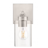 - Transitional wall sconce with clear glass shade