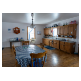 The large farmhouse provides a functional and flexible layout with ample space, offering approximately 8,400 square feet. The walkout basement includes a well pump room, a half bath, and a wood stove, providing both utility and additional workspace potential. On the main level, the home features a generously sized kitchen designed for daily living and gatherings, along with a pantry located in the washroom just off the kitchen. Two bedrooms are located on the main floor, as well as a half bath and an office nook positioned off the living room, creating a comfortable space for work or study.