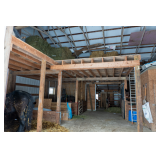 Another barn on the property offers a combination of shop and livestock space, featuring a 32’ x 48’ shop area with a loft, bathroom, and storage room. Attached to the shop is a 30’ x 48’ livestock area with three 10’ x 10’ stalls, a 5’ x 6’ tack room, and a hay loft. A 32’ x 8’ covered porch extends off the front of the shop space, providing a shaded area for work or relaxation.
