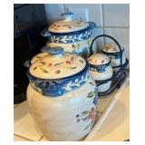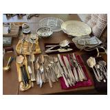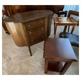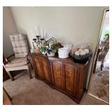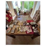 Beautiful furniture, antique sewing table, Lane cedar chest, Drexel Tribune Console, mango wood candle stands, Lane side tables, formal dining table w/ 6 chairs and table pads, MCM wood beverage cart & serving tray, tall curio cabinet, mahogany bookstand w/ glass shelves, camel saddle footstool, MCM cane backed tufted chair, Italian music box table (no music box), Ethan Allen wood side table, Hollywood Regency vanity chair and wall art, antique washstand (reproduction), Bridge table w/ 4 chairs, Lazy Boy electric blue lift recliner, Stifel lamps, vintage Christmas ornaments, holiday decor, kitchen items, Henry Link wicker bedroom set, silver plate, crystal, Lenox “Woodspice” stoneware dining set w/ serving pieces, Hummel and Beatrix Potter figurines, David Winter cottages, 1930's silk taffeta wedding dress (burgandy color w/ pleats), framed art, patio furniture, chiminea, potted outdoor plants and much more!! |