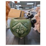 Green Ceramic Vase with Panda Decor |