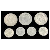 Quality Numismatic Collection - Morgan Dollars, Premium Mint Sets & Silver Bullion. This distinguished numismatic auction features a focused collection of quality American coins with emphasis on Morgan and Peace dollars, walking liberty half dollars, and comprehensive US Mint sets with silver content. With strong appeal to mint set specialists, silver stackers, and serious collectors, this sale delivers exceptional value. MORGAN AND PEACE DOLLARS: Quality Morgan dollars spanning 1885-1901 including 1885, 1890, 1897, and 1897-O examples, complemented by 1921 specimens with multiple mint marks (1921, 1921-D, 1921-S). Peace dollars from 1922-1924 complete the dollar section with multiple year representation. WALKING LIBERTY HALF DOLLARS: Specimens spanning 1938-1945 including 1938, 1942, 1943, and 1944 examples provide excellent date variety for series completion. EXCEPTIONAL MINT SET HOLDINGS: Comprehensive Calhoun Type sets spanning 1947-1961 with 90% silver Franklin half dollars, plus 1962-1963 US Mint sets and 1964 Mint set featuring 90% silver Kennedy half dollars. Special mint sets from 1965-1970 include 40% silver half dollars. 1976 bicentennial 40% silver set with Eisenhower dollar and 1976 Kennedy half proof provide additional premium appeal. HISTORICAL CURRENCY: Silver certificates spanning 1928A funnyback through 1957 series including STAR notes, 1935 and 1957 examples with conescutive serial numbers, red seal $2 banknotes from 1953-1963, and 1934 $20 Federal Reserve note representing premium twentieth-century American currency. SILVER CONTENT APPEAL: Mercury and Roosevelt dimes in 90% silver, war nickels in 35% silver, multiple 40% and 90% silver half dollar collections, plus rolls of wheat cents providing substantial precious metals value. MODERN BULLION: 1988 American Silver Eagle and 1989 Canada Maple Leaf silver coin round out the bullion section. EARLY AMERICAN & RARITIES: 1858 Flying Eagle cent, 1865 Two-Cent piece, 1780 Maria Theresa Thaler, and 1911 King George V gold sovereign. PRECIOUS METALS JEWELRY: 65+ grams of stamped sterling jewelry, gold rings including Masonic and US Air Corps pieces, vintage class ring from 1971 Licking Valley Men's, and 22 karat gold miniature St. Gaudens coin provide additional precious metals appeal. SUPPORTING COLLECTIONS: Lincoln cent collections spanning 1909-1982, Whitman Jefferson nickel album, Obsolete Coins of Yesteryear sets, and specialty commemoratives including Harry S. Truman centennial.