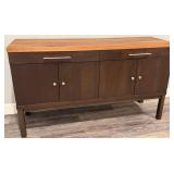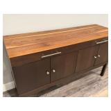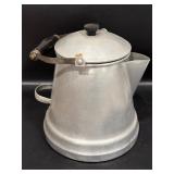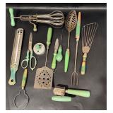 Mid-Century Modern Sideboard: The star of the furniture category, this sideboard features a rich walnut top and a dark brown base. Its clean lines and functional design are perfect for any MCM enthusiast looking for a statement storage piece. Vintage Kitchenware: For those who love the "farmhouse" or "retro" look, the auction includes a Mirro Aluminum Coffee Pot with a wooden handle and a set of vintage kitchen utensils with iconic green wooden handles.