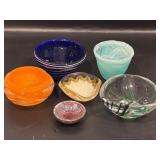 Kosta Boda Art Glass: Highlights include a stunning Hand-Blown Blue Swirl Glass Bowl and a classic white-and-blue swirled design. Marked "Since 1742," these pieces represent centuries of Swedish craftsmanship and make sophisticated centerpieces. Artisan Glass Collection: Hand-blown bowls in vibrant translucent orange, seafoam green, and deep blues—perfect for collectors of unique, textured glassware. Fragrance Lamps: A beautiful red glass fragrance lamp with a gold-tone lattice cap, blending home fragrance with high-end aesthetic appeal.