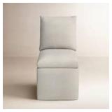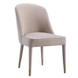 Perfect for modern dining, this armless chair features sleek lines covered in champagne velvet with welted trim and accented with brushed brass ferrules.