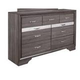Visually stunning and elegant, this 9 Drawer Double Dresser fills a room with a dynamic look and cozy appeal. Clean, modern design elements along with a fresh yet timeless look will transform your bedroom into a haven of serenity and style. Sold in comfortable gray which makes it a stress-free and easy way to coordinate countless room environments and décor choices. Features include roomy drawer space, silver-toned drawer front hardware, convenient jewelry drawers, and melamine detailing that enhances the graceful charm of this dresser. Quality craftsmanship in every detail ensures durability and long-lasting wear. This dresser is the perfect solution in your quest to create a showcase of style and comfortable living in your home and will provide you with years of versatility and enjoyment.
