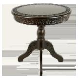 This round end table is a versatile addition to your living space, offering a cozy spot for a lamp or your favorite book. Crafted from a blend of solid and engineered wood, it features a natural wood grain color variation that adds a hint of rustic charm to your decor. The pedestal base showcases planked details, nodding to traditional craftsmanship while fitting seamlessly into modern homes. Its scratch-resistant surface means it can handle the hustle and bustle of daily life. Great for small spaces, this table is a stylish and practical choice for any room.