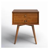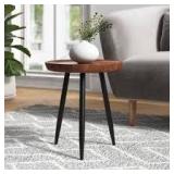 This mid-century-inspired end table brings a natural, organic look to your favorite reading nook or bedside. It features a circular tray-style top made from kiln-dried solid mango wood, showcasing unique grain variations that make every piece one of a kind. The top rests on three tapered iron legs with a sleek black finish for a modern, mixed-material feel. Its compact silhouette fits easily into tight corners or next to a low-profile sofa, providing just the right amount of surface for a drink or a small succulent. Plus, we love that its lipped edge helps keep your items from sliding off