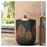 This cylindrical side table adds a sculptural accent to your outdoor setup with its matte black finish and carved leaf motif. Made from water-resistant stone and lightweight concrete, it’s easy to move and works well on patios, porches, or sunrooms. The round top offers plenty of space for drinks, books, or decorative items. Its earthy, boho-inspired design blends seamlessly with a variety of outdoor styles. Plus, it arrives fully assembled, so you can enjoy it right out of the box.