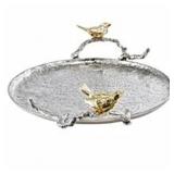 - Transforming a tranquil woodland scene into a striking home accent, this tray features a round textured silhouette, a metallic silver finish, and two curved branch-like handles adorned with gold birds