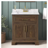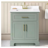 - 30 in. sage green vanity with white engineered stone top for a traditional look