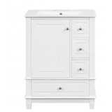 - Vanity cabinet comes fully assembled with countertop and basin attached, backsplash needs to be attached