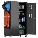Bunk Bed with Storage Cabinets and LED,Metal Beds Frame with Guardrail and Ladder for Bedroom,No Box Spring Needed (Black, Queen Over Queen)