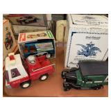 AUCTION Brzostek's Auction Service, Inc. 80 Smokey Hollow Road, Baldwinsville, NY 13027 (Off Rt. 48, in the Plaza, next to the NorthWest Fire District Station 3) SUN., FEB 15, 1 PM Preview: 12 NOON - 1 PM Auctioning for the Estate of Robert Seppi, Rochester, NY & other local consignors to include: Antiques/Collectibles: 2 Section Oak sliding glass door bookcase, Mahogany mirrored back etagere, Oak pedestal, magazine stand, Kennedy tool box w/ammo, Whitetail Hunter Bear bow, Fancy spindled Brass bed, Edison home phonograph w/floral horn, Silvertone record player, Victor talking machine record player, Camden, NJ; 1951 Little Lulu Strong Kleenex Tissue advertising display, Antique Kotex advertising display case, General Electric Vintage radio, Philco Model 70 or 90 Baby Grand Cathedral radio No. 83956, Stromberg Carlson Tombstone tube radio, Vintage receiver with Songbird Master-Tone 5 to 1 transformer, GE Vintage wooden radio, 1920’s wooden radio receiver, 2 New Haven & 1 Sessions tambour mantel clocks, Seth Thomas Cranbrook banjo clock, Mission Oak mantel clock, Samson Safe flex fan, GE Antique fan, Keystone Kinescope projector-Model NO.E-39, Moviegraph Model NO D-754 16mm projector, Revere DeLuxe 8mm Model 85 projector w/case & Revere 8mm 300" reels, NRA & Buck jack knives, 1884 Large Holy bible, Civil Defense helmet, Hapman 1907 British bayonet, Masonic Sword-J.R. Pettis & Co., Troy, NY Julius Baumgras, Alarm clocks-Westcox, Waterbury, Big Ben & Howard Miller; Collection of antique eye glasses, straight razors, harmonica, Antique Cuckoo clocks, 2 Antique quilts, Waffle maker, Simplicity sewing machine, Pathfinder Polaroid camera, Kodak Koda slide stereo viewer, Cine Kodak eight-Model 90, Kodak Easy share, Minolta auto pak-8 K11, Atari Flashback game console, Gilbert microscope set, Funmaker lab, Gilbert chemistry experiment set; Papermate ballpoint refills case, 2 Parker pen display cases, marbles, 2 Antique violins, assorted Christmas decorations, Roy Rogers, Louis Max Co., Inc. rifle, Coleman lantern, Geddes, NY jug, 2 Roseville Pottery vases, Fostoria bowl & candlesticks, 2 Duck decoys, binoculars, pipes w/Syroco holder, Pyrex mixing bowls, Diamond Match Co. tin box, Fire King lg. measure, Stangl pitcher, 20 Hess trucks, 3 Rayo Lamps w/HP half shades, Community flatware set, Walnut Framed antique portrait; Collection Of Men’s Watches: Fossil, Hamilton, Accutron, Quartz, Pocket watch, Girard Perregaux, Armitron, Chevrolet; Vintage Toys: Hop-A-Long Cassidy mechanical shooting gally, 1930’s “Lincoln Tunnel “Unique Art Mfg. co., Inc Tin wind-up toy, Marx LeMans road race set, American Flyer Train cars, track & accessories; Lionel Train cars & track, Lionel Construction kit 232, Lionel Engineers train outfit, American flyer No. 26781 RR trestle set, GI Joe Jouncing Jeep Tin wind-up toy, Courtland Walt Reach tin litho wind-up ice cream scooter, AAA Japan tin wind-up Monkey baseball player toy, “Drummer Boy” J.Cheim & Co. wind-up toy, 2 Technofix G.E. 258 Tin litho wind-up motorcycles, Unique Art GI Joe and the K-9 pups wind-up toy; Old Time mechanical bank, MM & Donald Duck weather forecaster (in original box), Irwin “Georgie the Whistling Boy” plastic wind-up toy, Wind-up Circus Zoo-Musical Elephant, Linemar Battery operated Cabin cruiser w/OB motor, Nosco’s Speed Buster Sport Car-No. 6730, Bachmann Bross. Inc. Plasticville School House kit, Police Auto Friction powered motorcycle, Linemar R-35 Tin Robot w/original box, Louis Marx & Co., Inc. plastic wind up midget racer, Moon man 001 No. 3379 Battery operated walking astronaut, Master Craft Transistor transceiver 49 MHz walkie-talkies, Military action figures, Schoenhut toy piano, Marx wind-up 1950’s metal fire truck, Hubley Dump truck, Tonka dump truck, Nylint Cadet Snorkel toy truck-No.740, Limited Edition of Ipswich Vintage car, Coleco Pac-Man table top mini arcade game, radio controlled robot, Cragstan battery powered shaking antique car, Buddy L van & fire truck, Comics-Dell (10¢ comic books), Harvey, Atlas, Superman DC National comics, Gaf talking View Master w/10 reels-Planet of the Apes, Wizard of Oz, the Partridge family, Tom & Jerry, Jack and the Beanstalk, Mickey Mouse, Huckleberry Hound & Yogi Bear, Space 1999, Bugs Bunny, Lassie; wind-up walking bear, Mickey Mouse Club TV bulb, Occupied Japan wind-up rodeo horse, Linemar tin friction vehicle w/driver, Irwin plastic musical Merry-Go-Round, antique jointed bear, J.Chein & Co. Tin lithograph wind-up musical church organ toy, Piston Action Robot “Robby the Robot”; Animated talking Mickey Mouse, Hasbro Marching Mickey Mouse, Cox Dune buggy, Nylint trail blazer, Fisher Pirce Musical Ferris wheel, roller Santa bear, walking Santa Claus, Armathron NO. 60-2364, Gilbert erector set, View Masters-21 Sawyer View Master stereo pictures, Gaf View Master 30 Standard, Super View Sight Ranger set Binocular & telescope, Collection of wrestling action figures, Hot Wheels & Matchbox cars, Collection of Antique dolls, box of doll clothes, plus more!